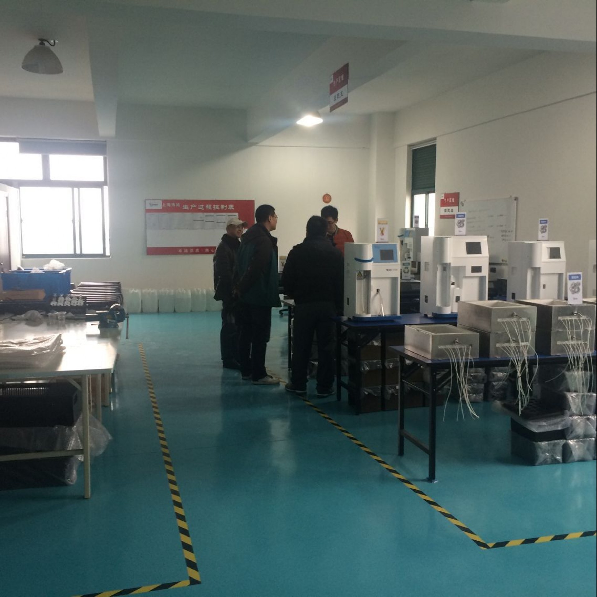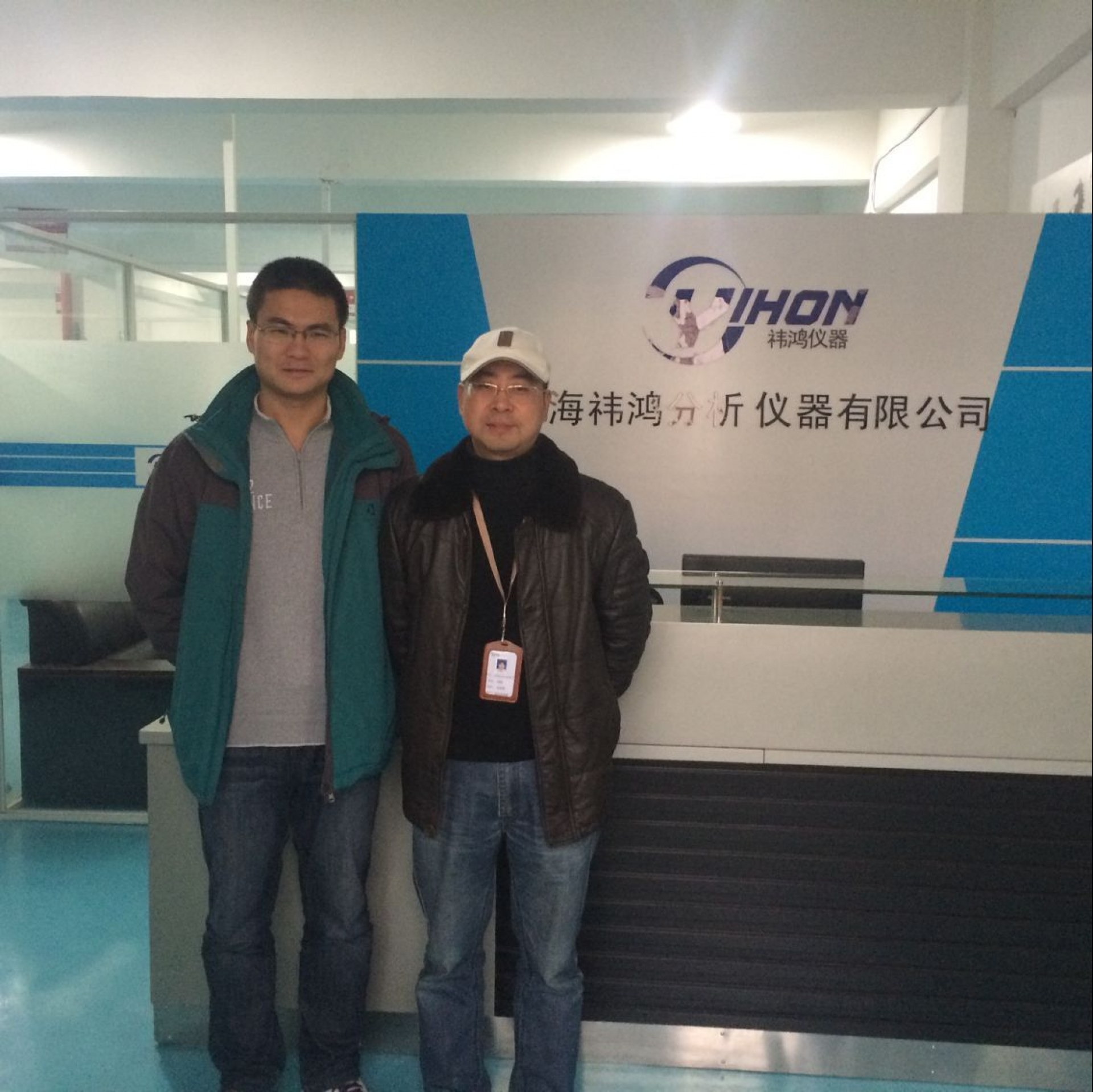 時老師參觀消解試驗 老師參觀車間了解全自動調(diào)試過程 胡總與時老師合影留念